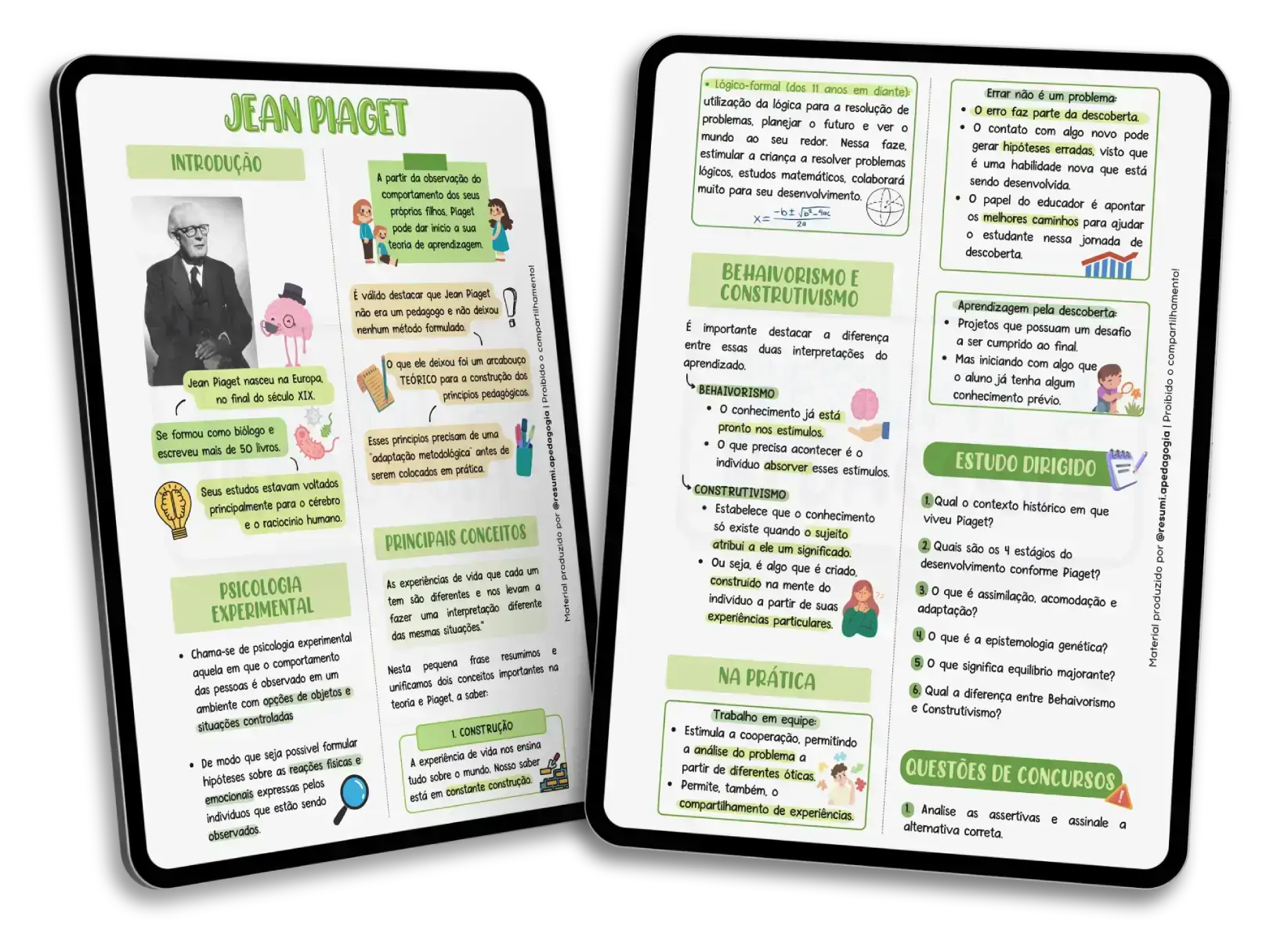 Reunimos as teorias pedagógicas que mais caem em concursos em um único material visual e esquematizado: